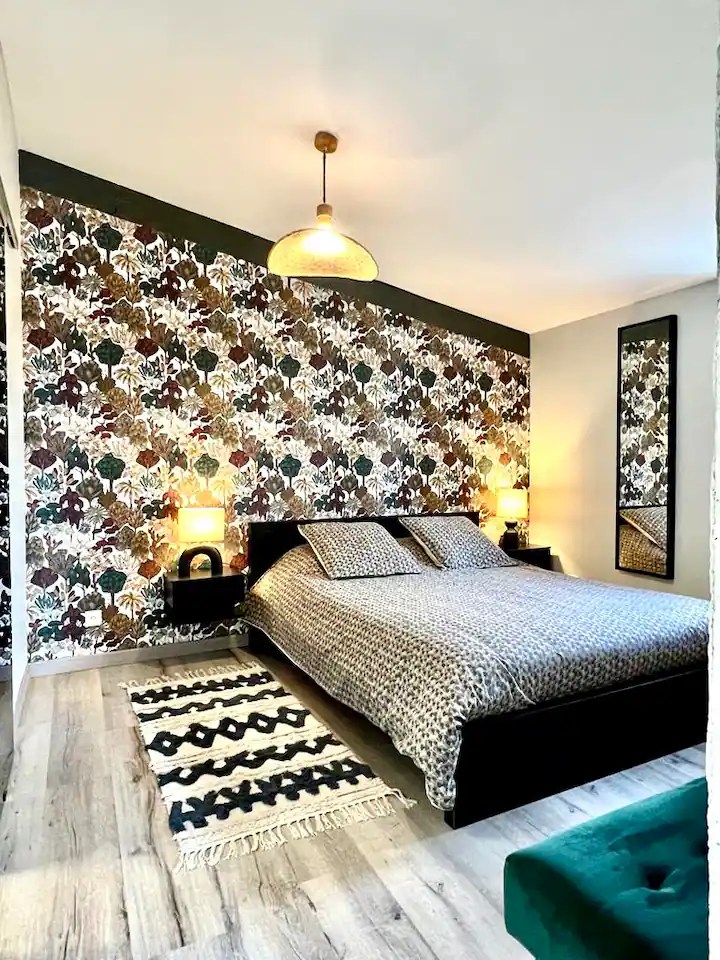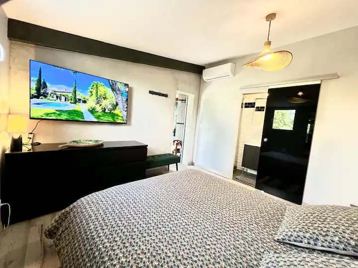 B&B composé de deux chambres, La suite Jardin de 20m2, en rez de jardin, disposant d’un espace d’accueil dédié, une salle de bain privative avec toilette, attenante à la chambre avec un lit de 160/200, une grande TV connectée.