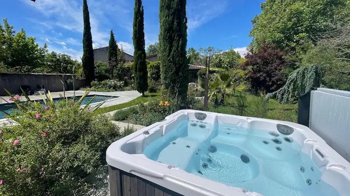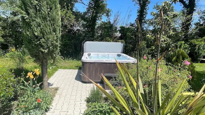 Piscine 9/4 non chauffée et Jacuzzi ouvert toute l’année.