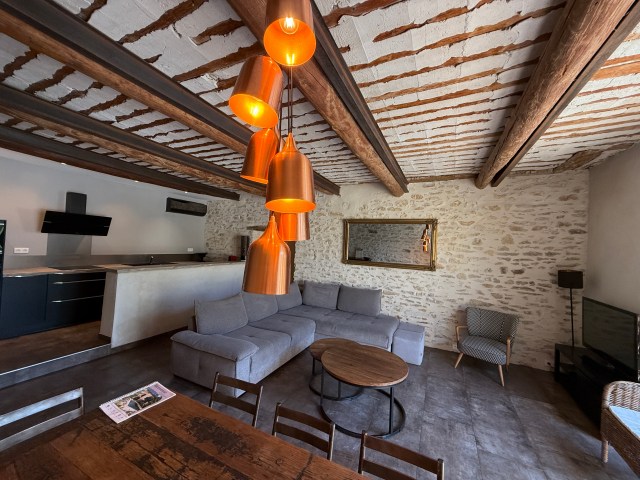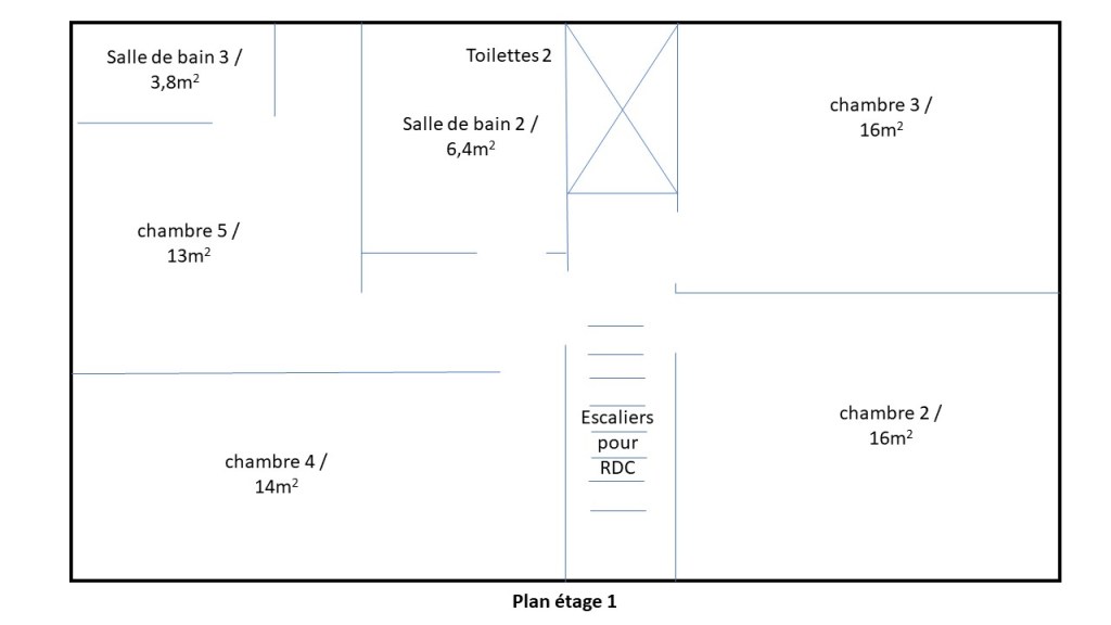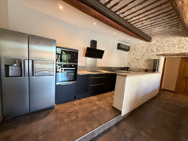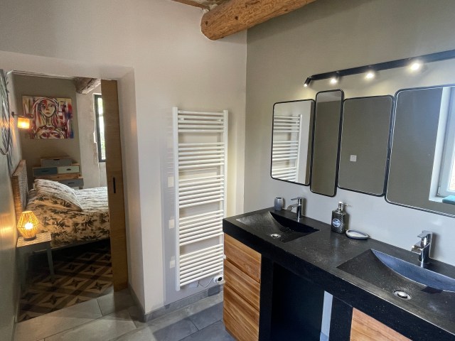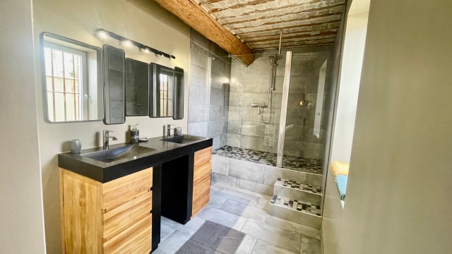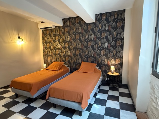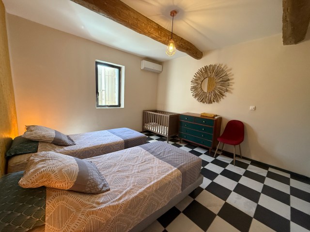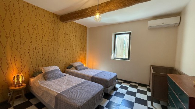 Principales caractéristiques : -Maison 200m2 climatisée sur 2 niveaux. -5 Chambres de 12 à 16m2 dont 4 climatisées et 1 au rez de chaussé. -3 Salles de bain. -1 toilette par niveau. -Cuisine ouverte toute équipée + un espace salon avec grande table familiale pour 10 personnes (total de 50m2). | Main characteristics : -House 2152 sqft on 2 levels with air conditioned. -5 Bedrooms from 129 to 172sqft including 4 with air-conditioned and 1 on the ground floor. -3 bathrooms. -1 toilet per level. -A fully equipped open kitchen + a large living room with a farm table for 10 person (for a total of 538sqft) |